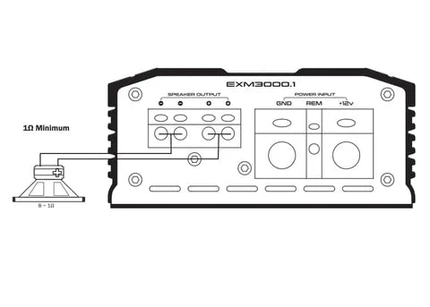 - Power @ 14.4V @ 2Ω: 1 X 1000 WRMS