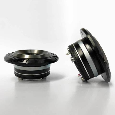 The all new MO75T shallow mount horns have a design that is like no other. The unique phase plug (point in the center), horn flare, and diaphragm have all been optimized to produce a sound quality that is far superior to other horns on the market. Thes horns give you extreme volume levels and wonderful sound without being harsh and hissy like other horns.