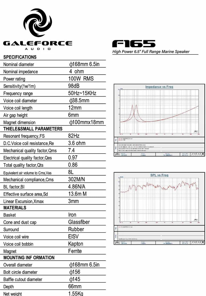 The F1 series is our fully water-proofed face, low power 2-way speaker. The F1 6.5" is the perfect upgrade from factory in any environment that faces the elements. With a glass-fiber cone, waterproof tweeter, and rubber surround, you can rest assured that you can jam out even if its pouring rain!