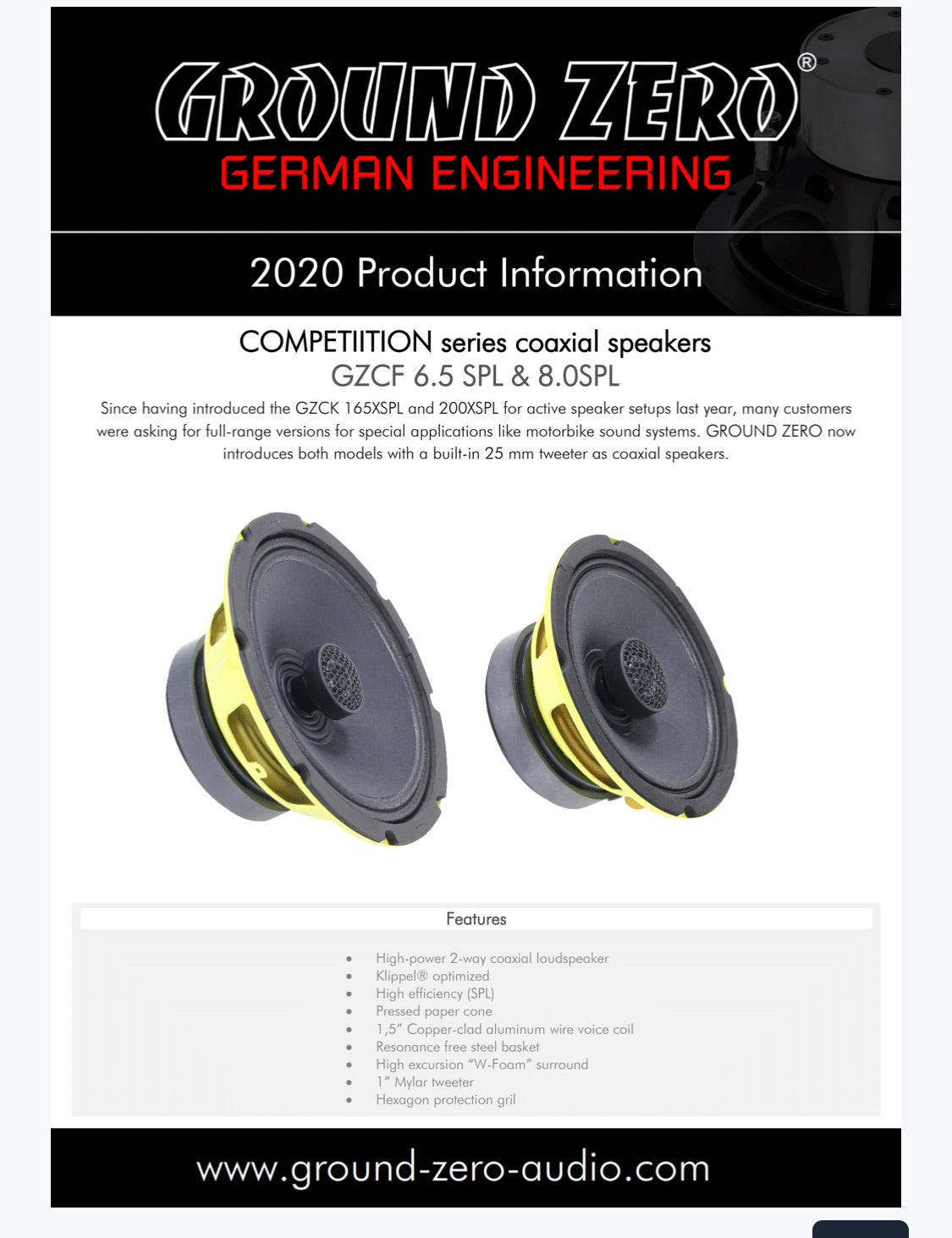 Ground Zero GZCF 6.5SPL - 6.5” Coaxial (pair)