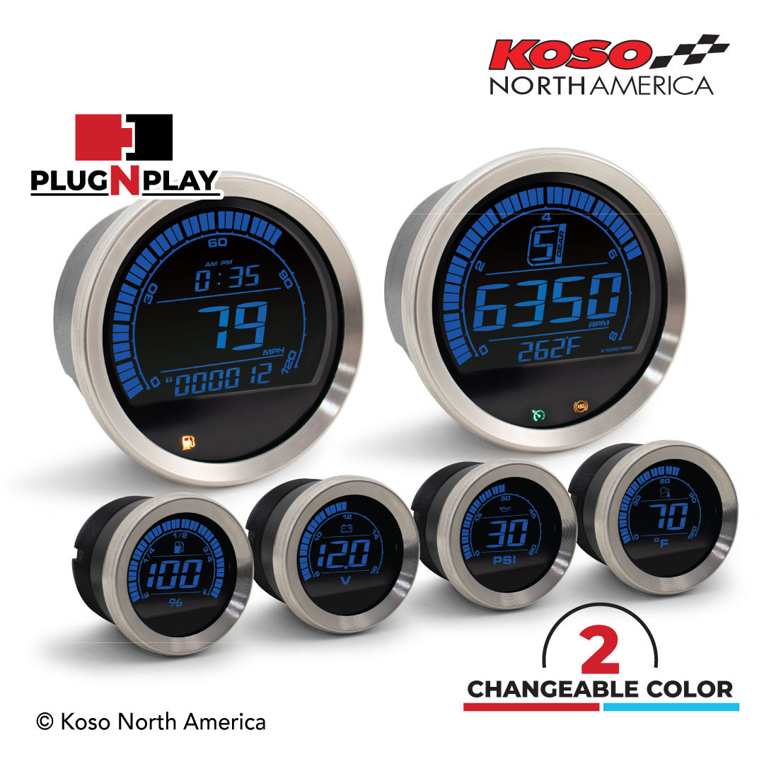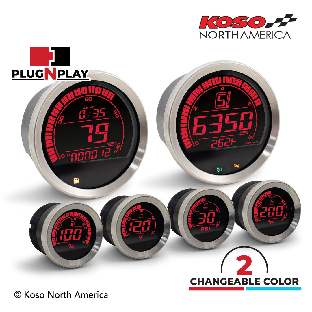 Koso North America - Meters - Gauges - HD-02 | 6 pieces kit (silver bezel) | for Harley-Davidson®