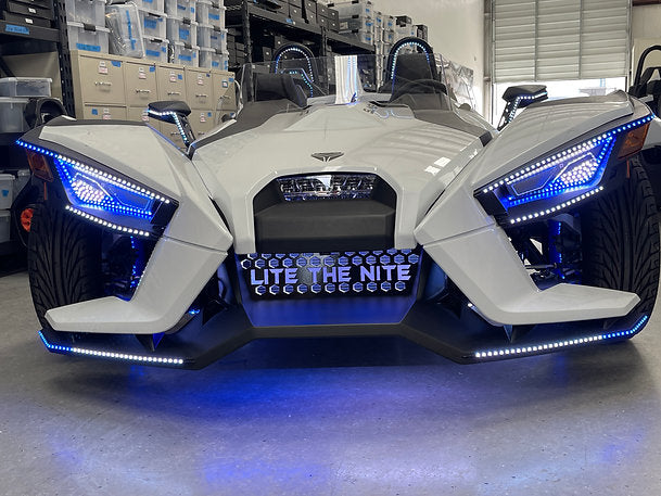 The designers at Lite The Nite LEDs have come up with another outstanding exclusive product. Our custom designed Head Light Halos will soon become the most dynamic feature of any front view lighting kit. Our HHL come complete with single color and multicolor chase modes. And that’s not all! Shock and amaze spectators as our HHLs flash, strobe, and chase to the beat of your music. All of these dynamic functions are already built into our system and requires no additional hardware or funding. These HHLs are the perfect addition to our already dynamic light kits but can be used independently based on your taste.