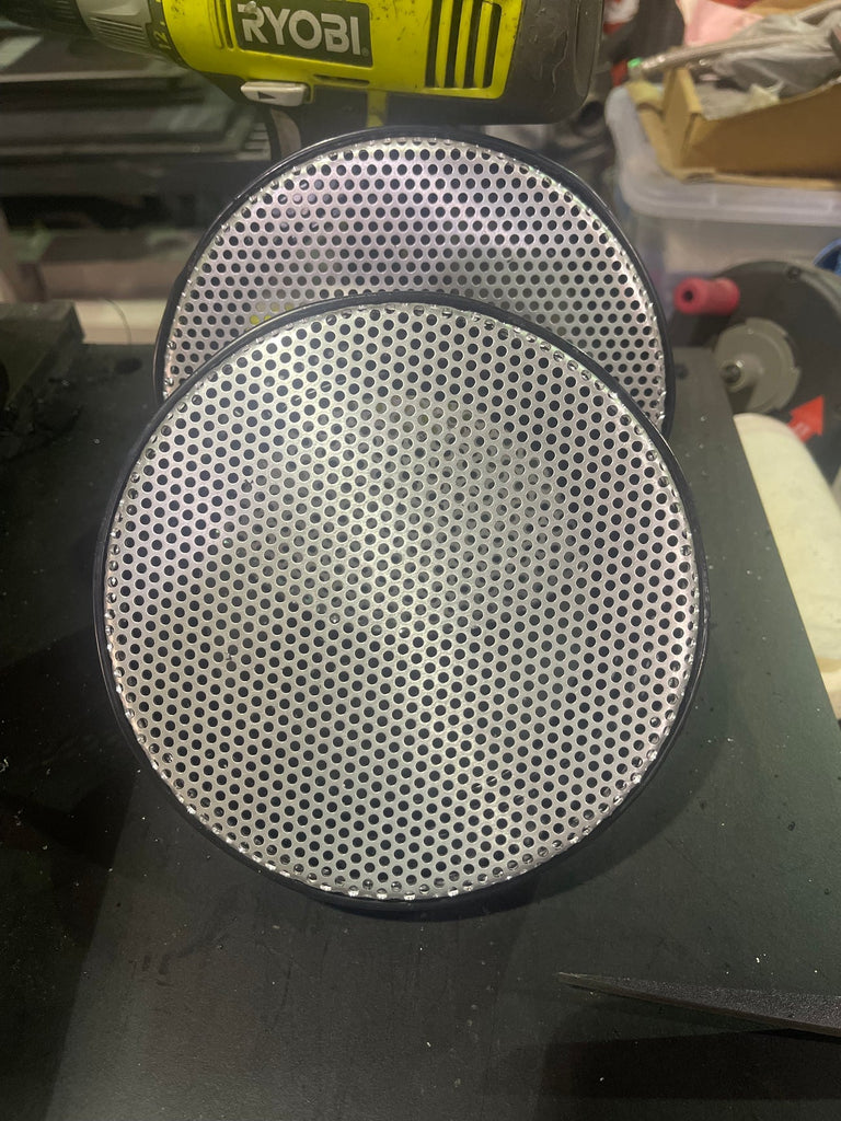 Made from Polyurethane, sandable, paintable. Comes with raw aluminum mesh grills. To give your tour pack or lowers a nice look without having to heat them up or run a seen spacer being the speaker that looks out of place, or Cutting up the inside of the Lower fairing to gain extra mounting depth.