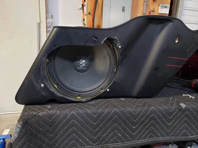 Fitment will also vary by bag manufacture. Using a Quality bag or stock bag will achieve the best results. The inside diameter may have to be opened slightly as there are different speaker manufactures on the market. All new designs beginning 12/1/21 and material come with Speaker and ring mounting hardware. Threaded Inserts for speakers ( 8 ) 10-24 Stainless steel hardware, 16 outer ring hardware. Drill bit and tool to put in inserts. Panel bond not included.