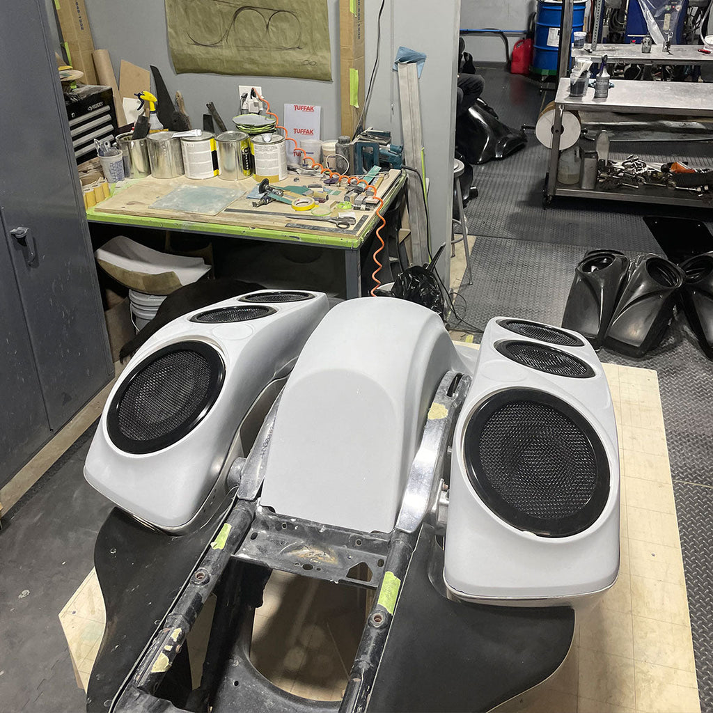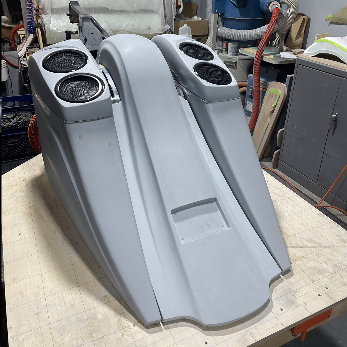 The bags are 6 inches lower than stock bags and have great steer ability over 8 inch bags. You won’t find a longer, better looking set of bags on the market. Speed By Design uses nothing but the highest quality products throughout our whole design and build process. We use high grade vinyl ester resin which equals less shrinking and longer cure times but much straighter parts. Not only that, the higher quality materials provides greater longevity in the life of the part. Fact is we spend much more time tooling them and spend more money building them. So it saves you time and labor on your build. You will be truly amazed at the quality of finish, the straightness, and the perfection of the body lines. Get your Long Baller Rear End today!