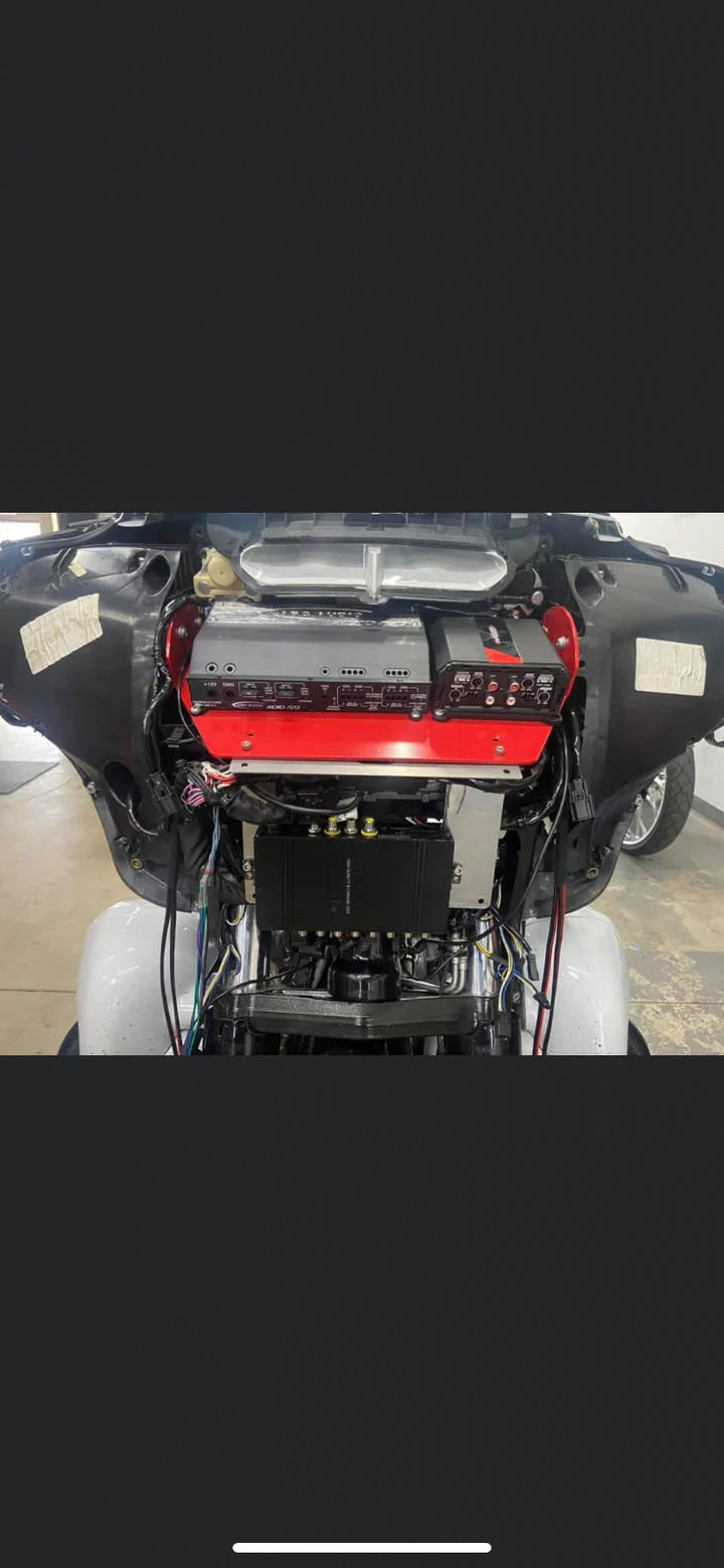 Our Street Glide Amp Rack has an option for a bottom plate for your custom audio