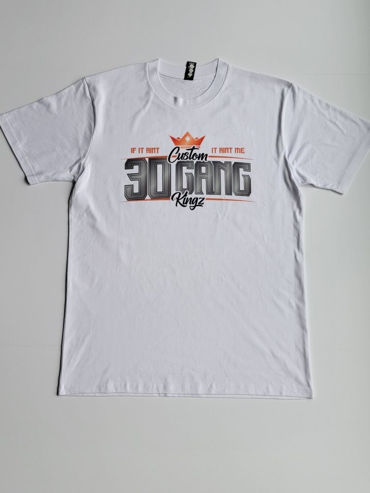 30 Gang Custom Kingz Apparel - MENS 30 Gang Block Tee- Silver and Orange