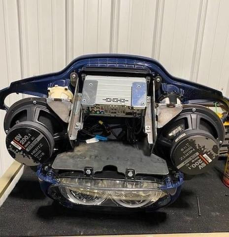 The wait is over! You want 8’s in the front of your 2015 & up road glide…no worries we got you covered. No more molding, cutting, painting or long waits to get your bike back. We have designed a complete 100% OEM replacement bracket that allows you to run 2 8’s and multiple amps inside the factory inner and outer fairing with zero body modifications to maintain that factory look. It is made to accept all 8” speakers. We have included a set of 8″ Silicone Speaker Baffles (see pictured) with your order at no additional cost. Also has an amp tray where we created the maximum amount of space to allow you to run multiple amps and/or DSRs. Compatible with stock radio, Sony or the new Alpine Half Din Radio. This part is also made available with optional super tweeter mounts for those that prefer to run tweeters up front.