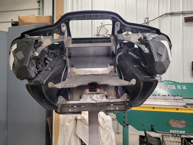 - This bracket also eliminates the pods and lower vents in the fairing. The vents will act as ports for better sound on the road. We will include mesh for the rear vent holes.