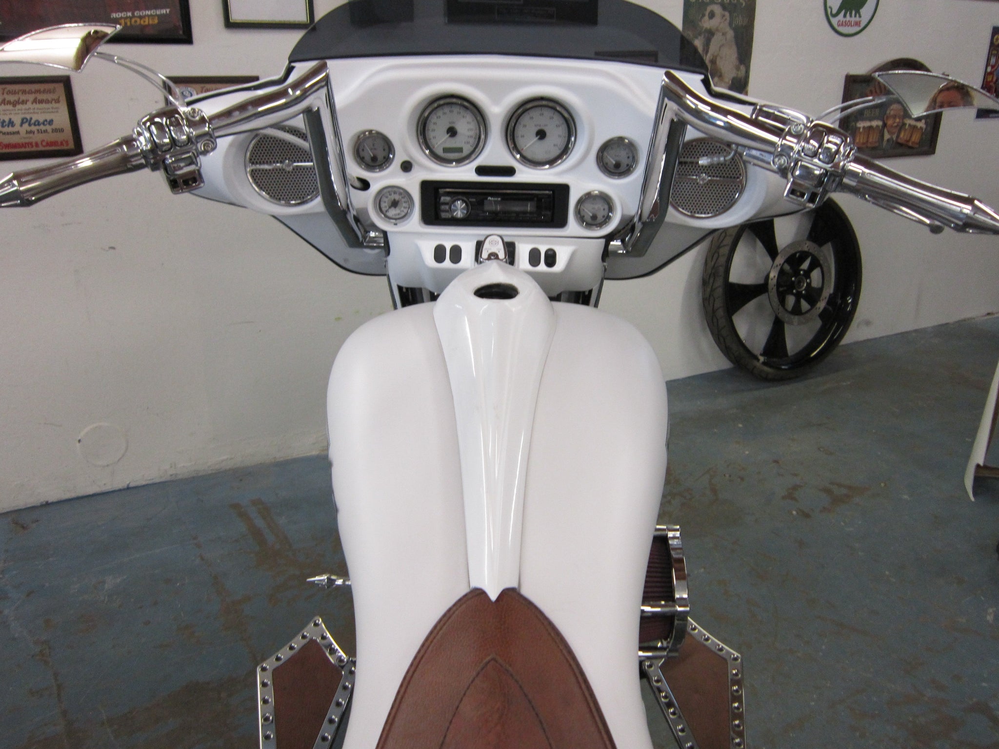 Custom designed hand laid fiberglass dash kit for 6 gallon tanks. The Demon 6 dash kit has an insane unique look to compliment your Harley Davidson bagger. Superior quality and craftsmanship. Made in the USA.