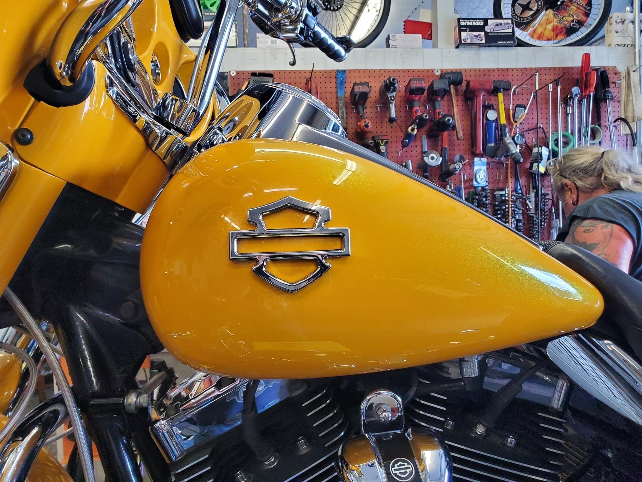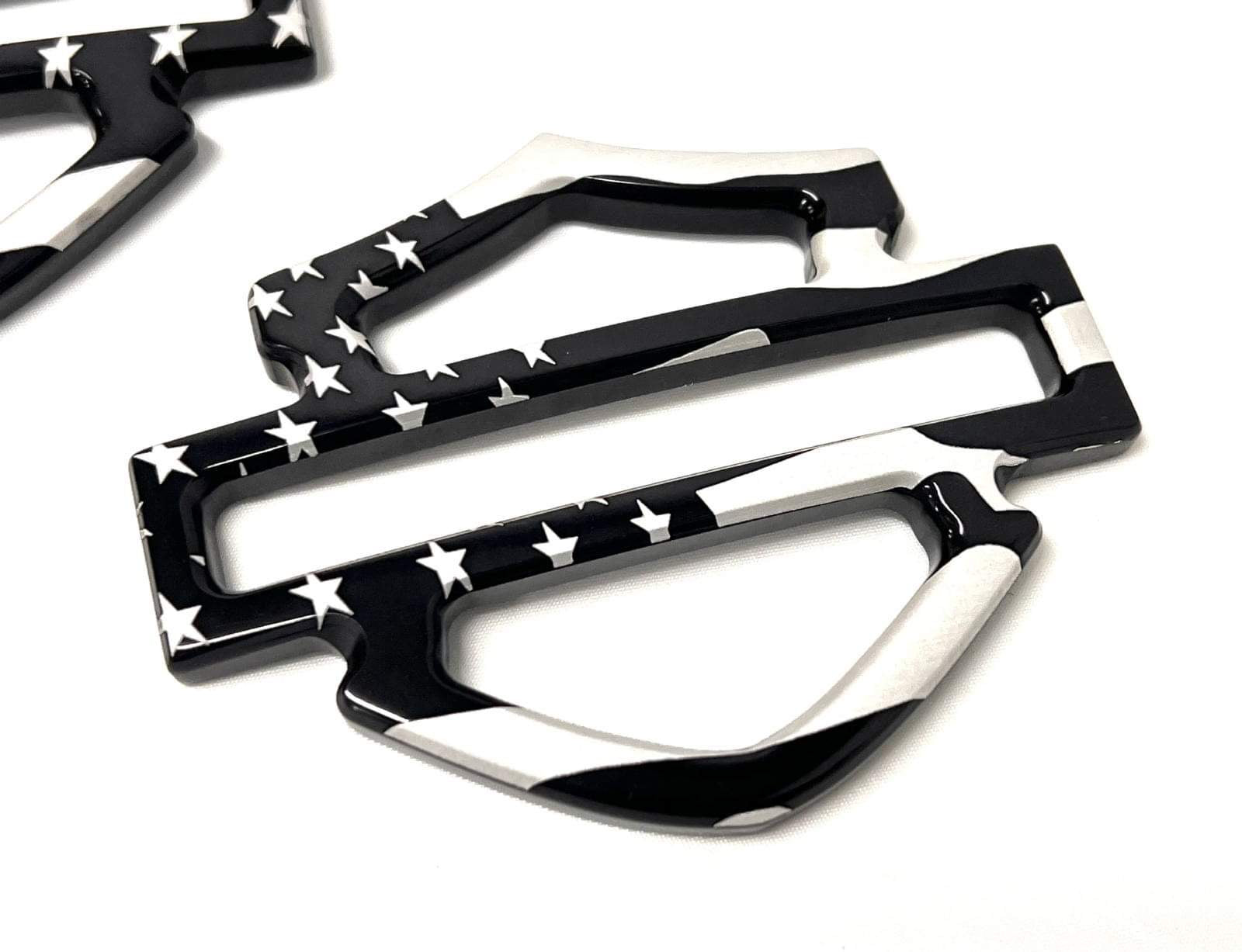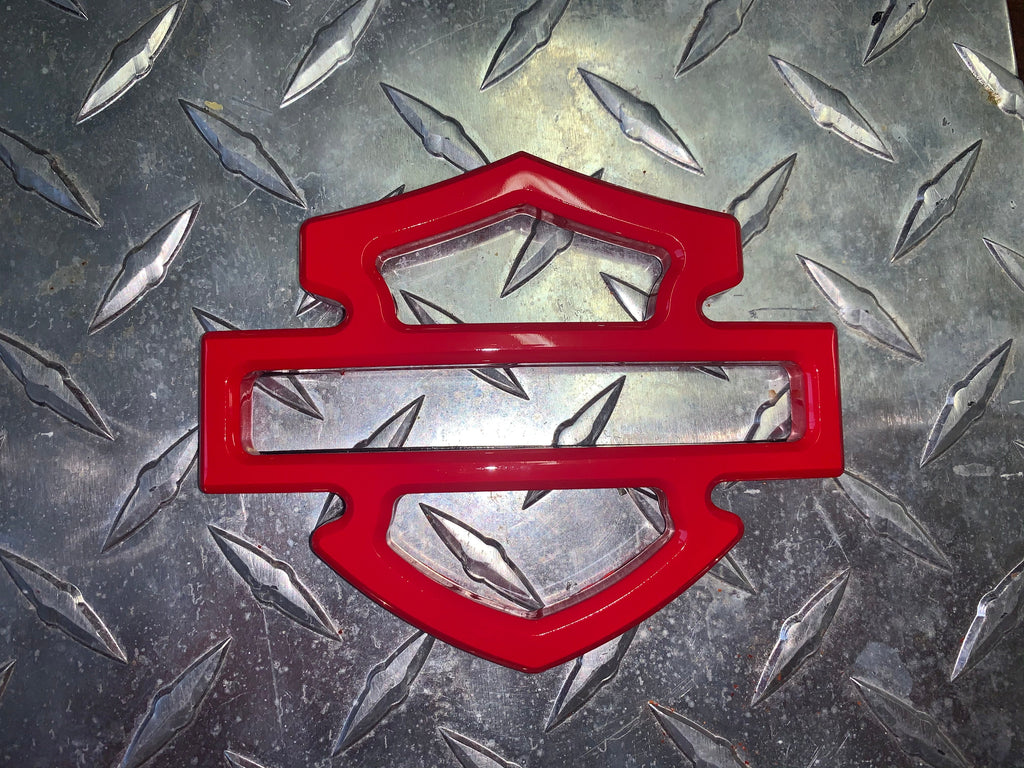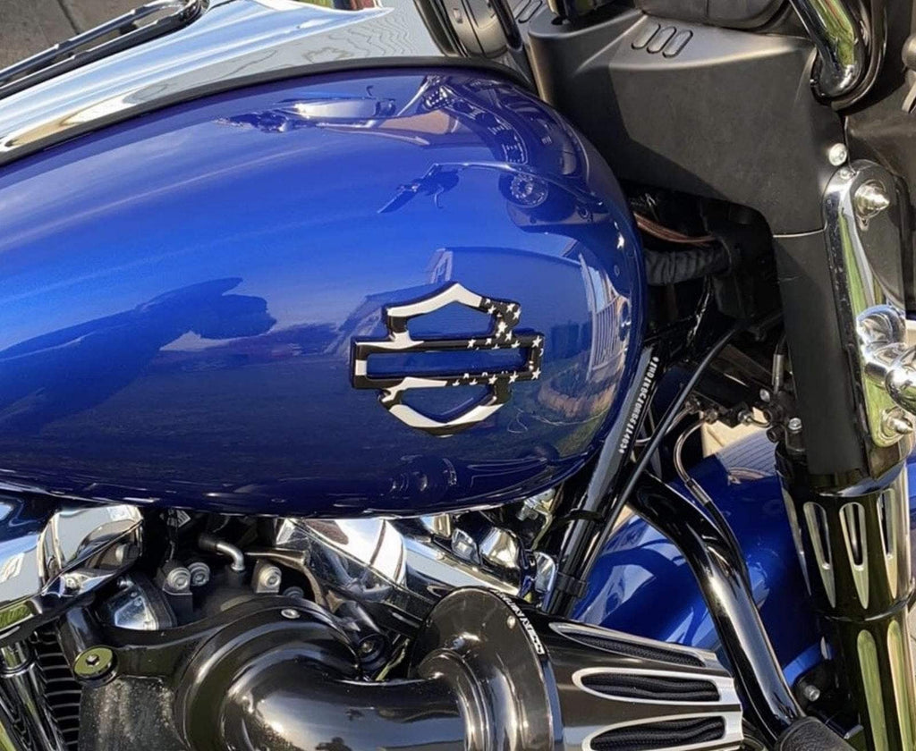 Comes stamped (bent) to fit on touring model gas tanks. 3M TAPE PROVIDED.