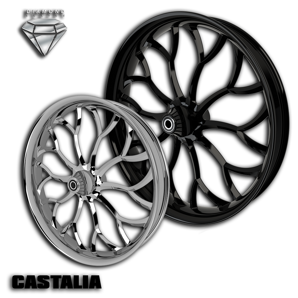 We have 21 inch, 23 inch, 26 inch, 30 inch motorcycle wheels up to 32 inch motorcycle wheels. Also matching rear wheels, pulleys and rotors. SMT wheels and parts are custom to your order.