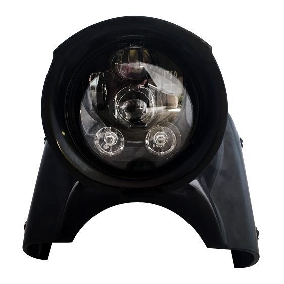 Speed by Design Snub Nose Road King Nacelle is designed with 26” or 30” Short Neck Kits in mind. While intended for a 5.75 inch diameter head light, the Snub Nose Nacelle will look best with the Vision X Vortex LED headlight. The Snub Nose Nacelle is offered with either the bar clamp cover that accepts the Dakota Digital dash MCL-5200 Spiked Speedometer with Indicators or without. The Snub Nose sold complete with bar clamp cover is $599.00 retail.