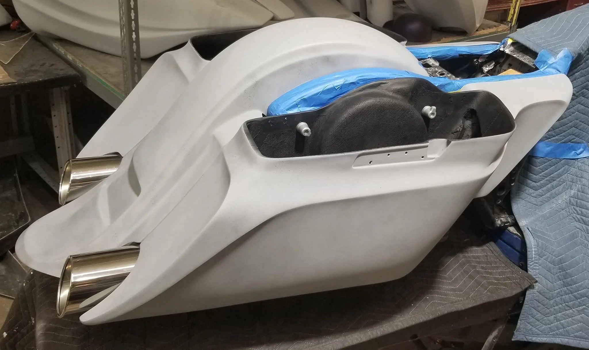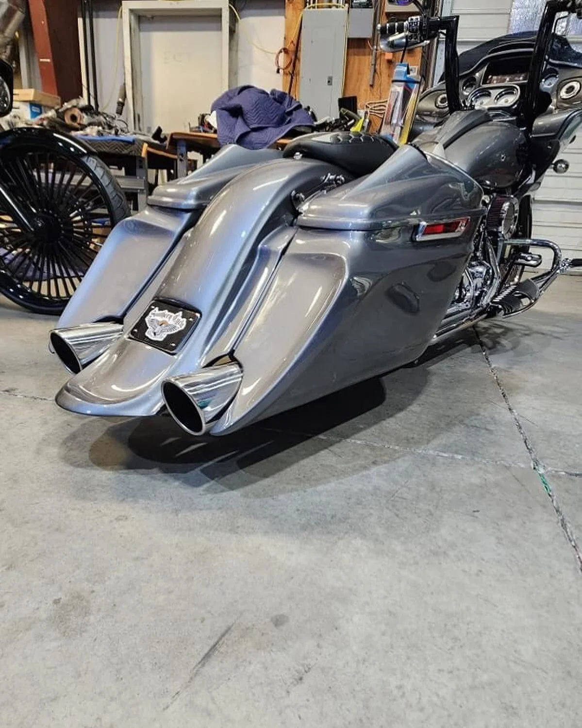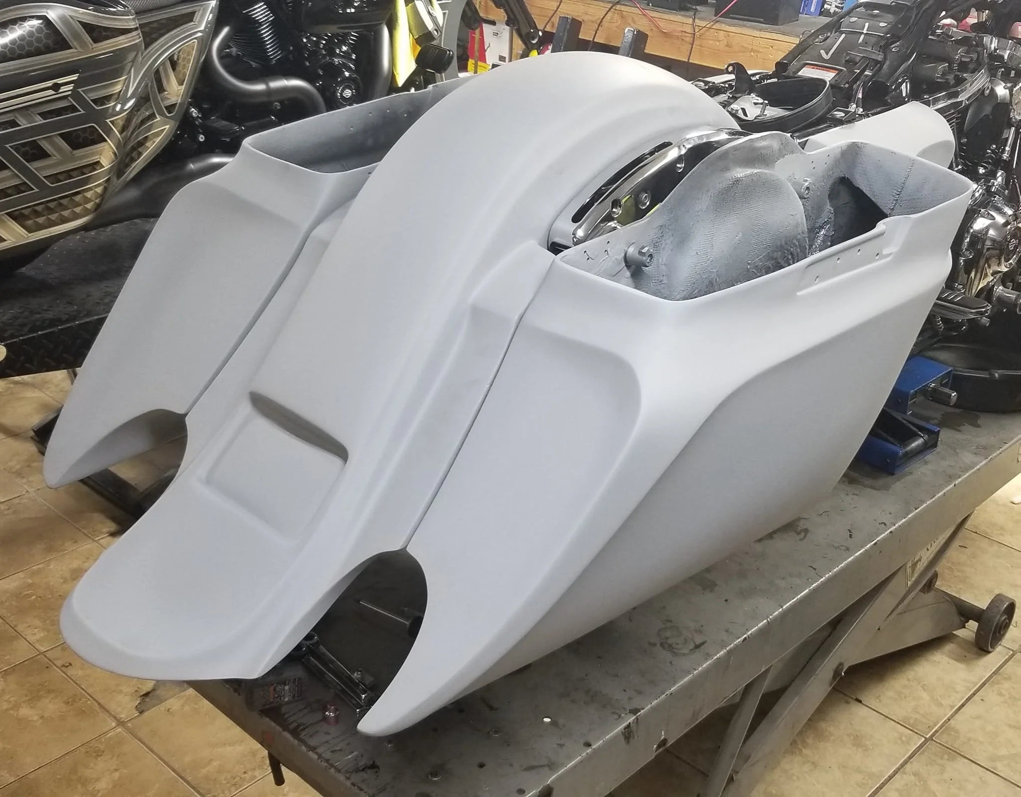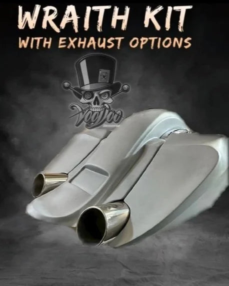 Voodoo Wraith© (Reg Rail/ Exhaust) Bags with molded side covers as one piece/ Rear Fender